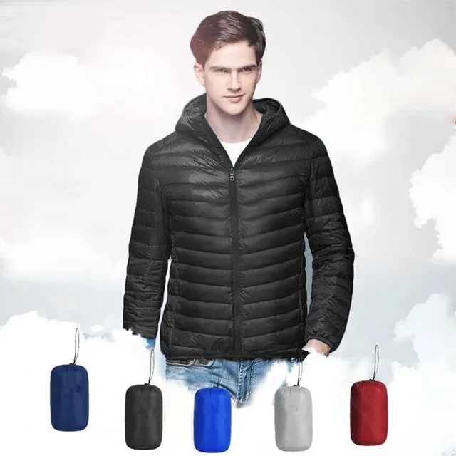 UETEEY Autumn Winter Down Jacket Men Ultra Light Windproof Waterproof Anti Fouling Anti-Oil White Duck Portable Hooded Coat Male