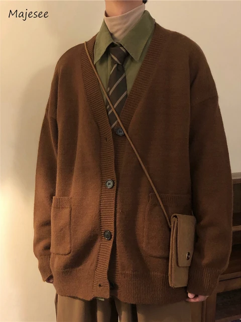 Cardigans Men Retro Simple Streetwear Autumn Winter Warm V-neck Solid Pocket Popular American Style Male Knitting Casual Daily