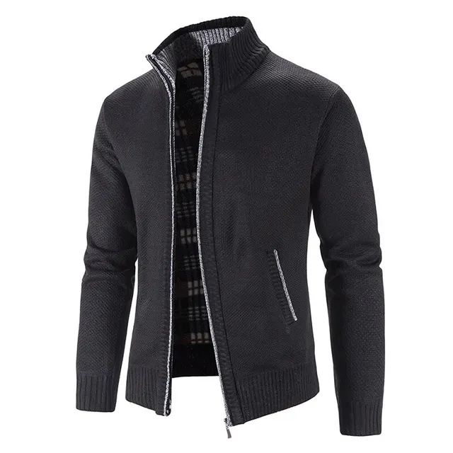 Thickened jacket men’s autumn and winter warm trend line stand collar knitted cardigan sweater coat