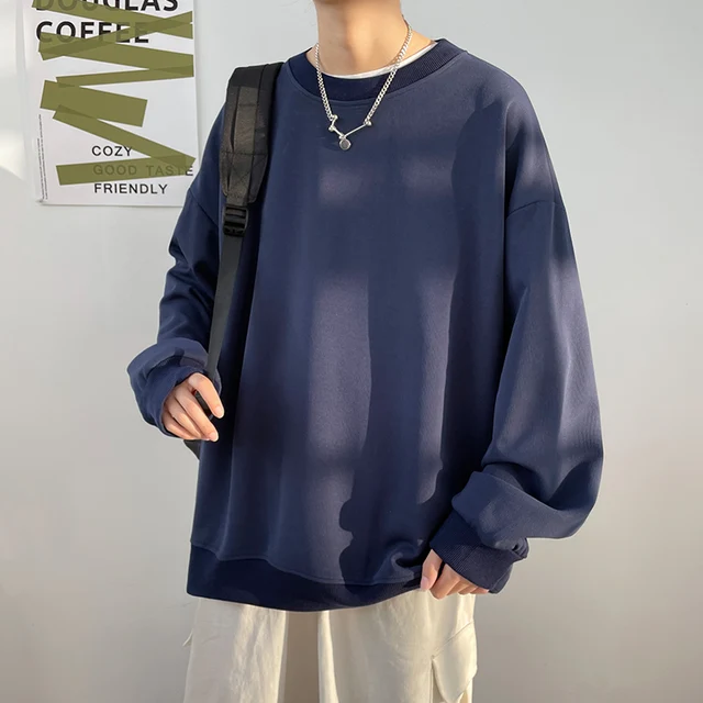 Simple Design Round Neck Sweatshirt Men Loose Streetwear Pullover Male Hoodies Black Beige Pink