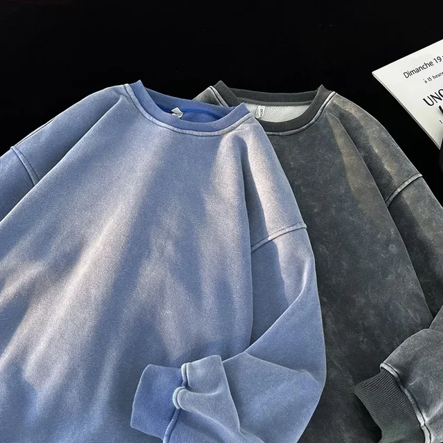 New Autumn Round Neck Washed Men’s Hoodie Sweatshirt Couple Long Sleeve Loose Europe and America Street Boy Pullover Sweater