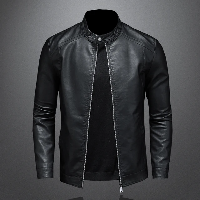 Spring Autumn Leather Jacket Men Stand Collar Slim Pu Leather Jacket Fashion Motorcycle Causal Coat Mens Moto Biker Leather Coat