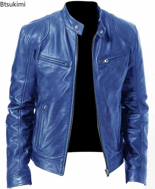 2025 Leather Motorcycle Jacket Men Slim Short-Coat Collar PU Jackets Autumn Winter Windproof Leather Coat Blazer Men Blazers 5XL