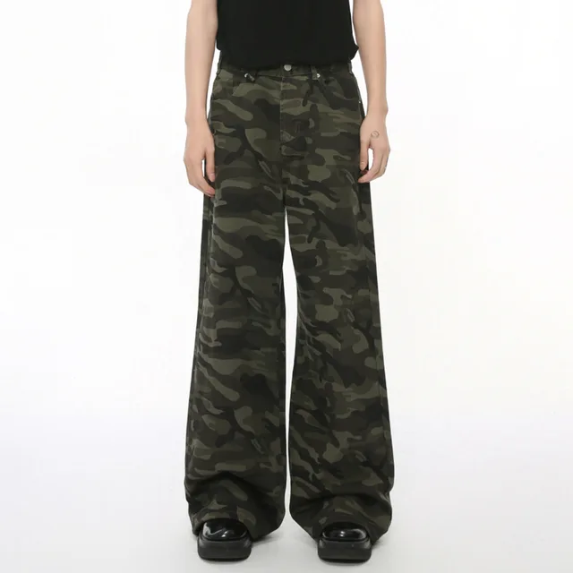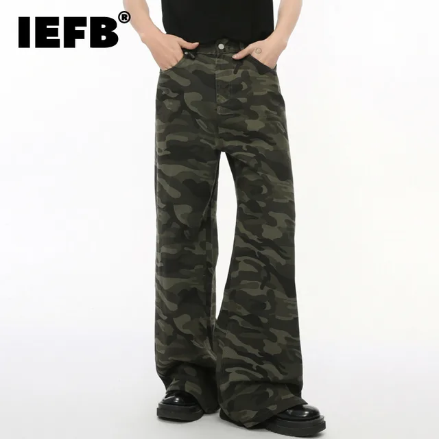 IEFB Vintage Camouflage Men’s Jeans Fashion Washed Casual Wide Leg Denim Pants Autumn Winter Loose Male Trousers Old Blue 9C354