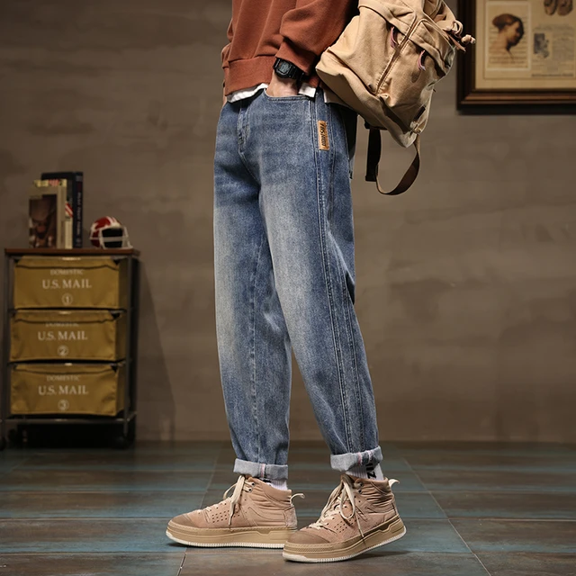Men Blue Loose Tapered Trouser High Quality Wide Leg Harem Jeans Male Clothes Streetwear Leisure Baggy High Street Denim Pants