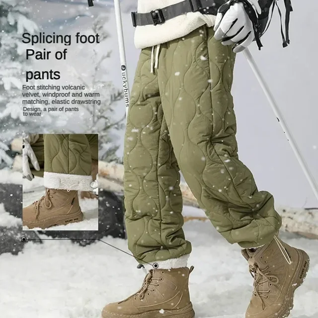 Winter Down Cotton Pants Men’s Outdoor Plush Thick Velvet Warm Sports Pants Lambswol Casual Waterproof Windproof Ski Pants 7XL