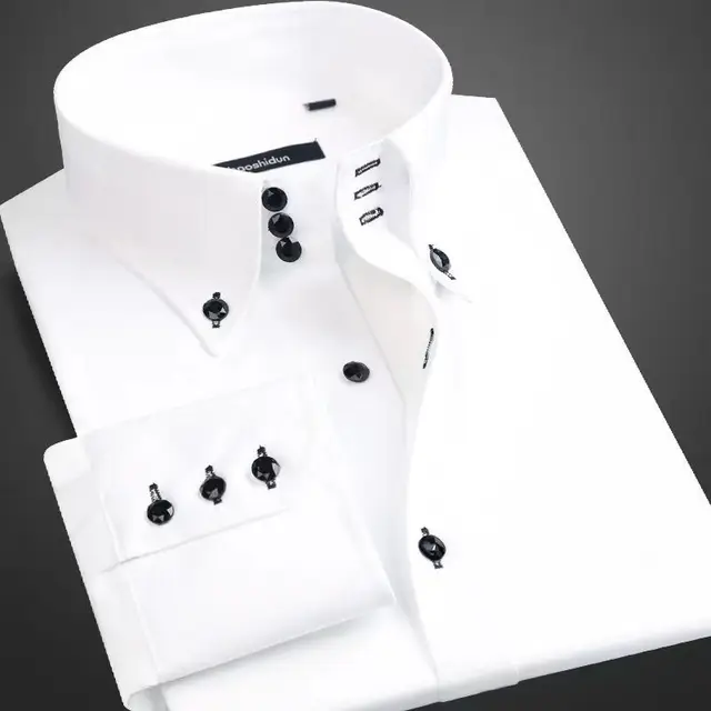 Dress Shirt for Men Button-down Collared Formal Business Long Sleeve Casual Korean Fashion Slim Fit Male Designer Shirts White