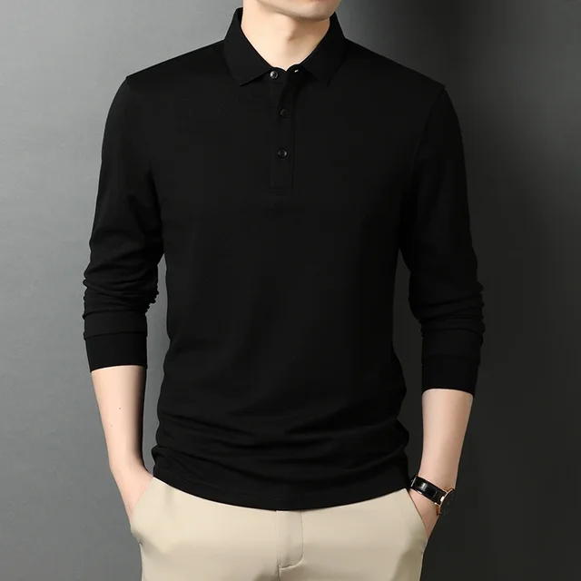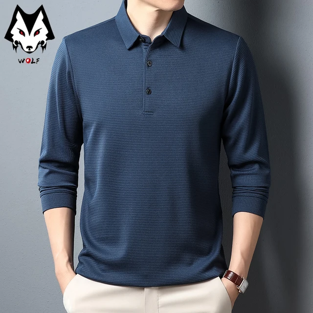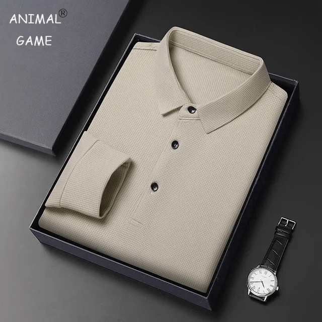 Spring and Autumn Men’s Long sleeved Polo Shirt business casual Fashion Classic lapel neck Shirt European and American plus size