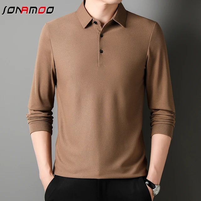 Men’s Business Casual Polo Long Sleeve T-shirt Summer Comfortable Solid Top