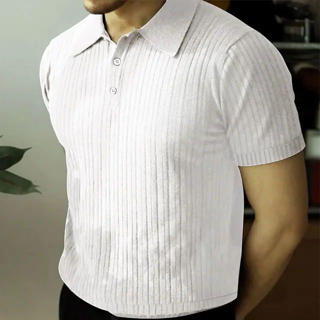 2024 Summer Knit Men’s Polo Shirt Business Casual Striped Lapel Short Sleeve Henry Shirt T-shirt Comfortable Men’s Clothing