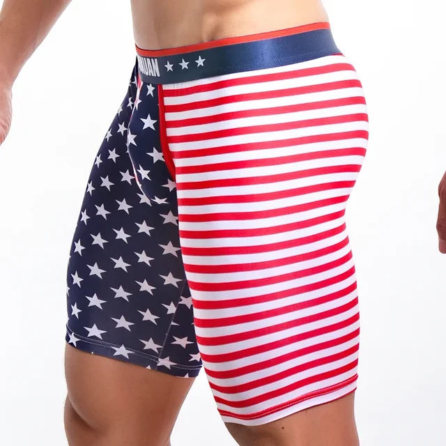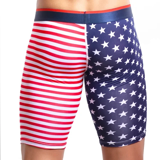Men’s Underwear Long Boxers Slim Fit Home Fitness Tights American Flag Printing Underpants Male Trunk Five Minutes Boxers