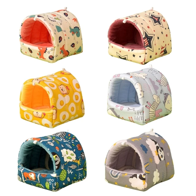 Double Layer Pets Hammock Plush Warm Bed Hamster Cage Sleeping Pad Print Guinea Pig Bed Rodent Hammock Chinchilla Little House