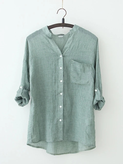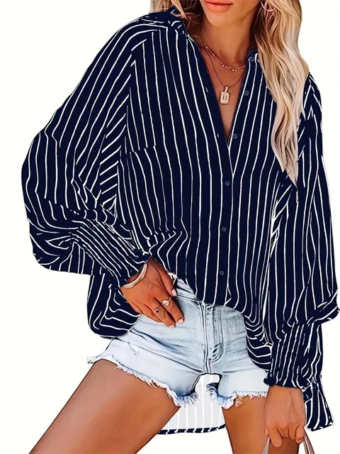 Plus Size 1XL-5XL Women’s Button Long Sleeved Shirt V-neck Striped Top Casual Fashion Breathable Shirt