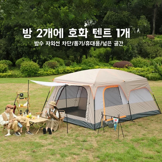 Camping Family luxury Tent 4-12 Person Double Layers Oversize 2 Rooms Thickened Rainproof Outdoor Family Camp Tour Equipment
