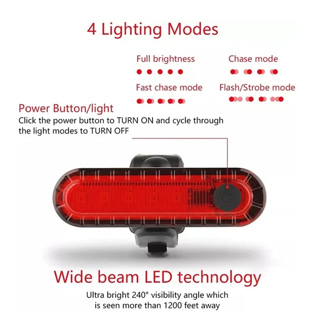 Rear Bike Tail Light USB Rechargeable Red Ultra Bright Taillights Fit On Bicycle Easy to Install for Cycling Safety