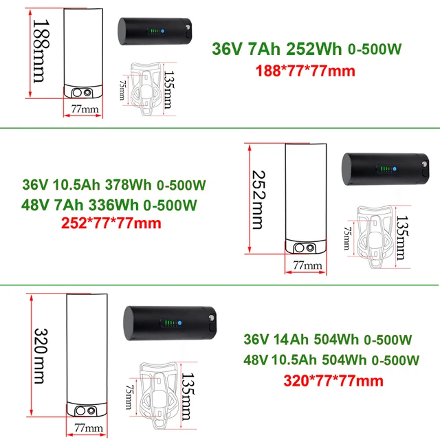 Mini Bottle EBike Battery 36V 10.5Ah 9Ah 48V 7Ah San-yo 18650 Li-ion Battery Pack for Bafang TSDZ2 250W 350W 500W Motor