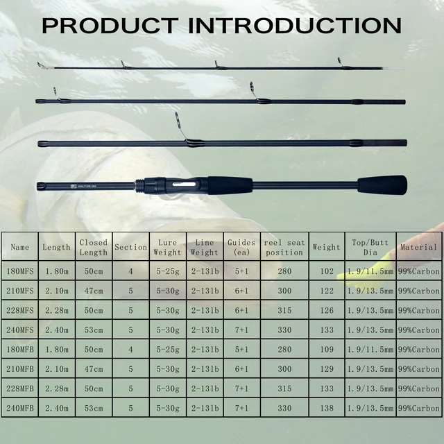 Sougayilang 5 Sections 2.1m Spinning Casting Fishing Rods Ultralight Weight Carbon Fiber for Travel Freshwater Fishing Pesca