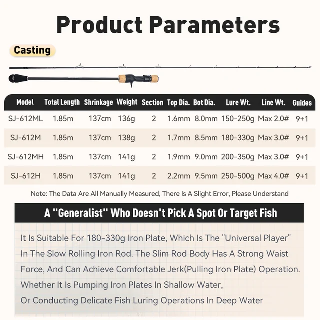 LEYDUN Rang’s SJ Slow Jigging Fishing Rods ML M MH H 1.85m Saltwater Boat Casting Rod High Carbon Sea Boat Pole light Rod