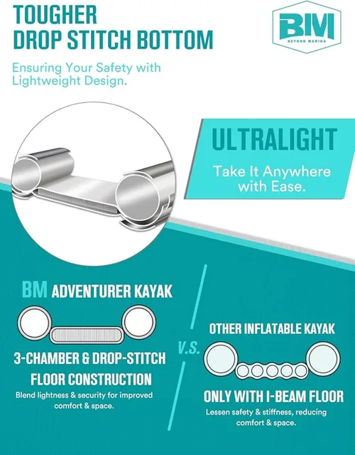 Kayak Foldable Kayak for Adults Blow Up Kayaks with Kaykay Seats Foot Pedal 7.6 FT Aluminum Oars Output and Input Air Pump