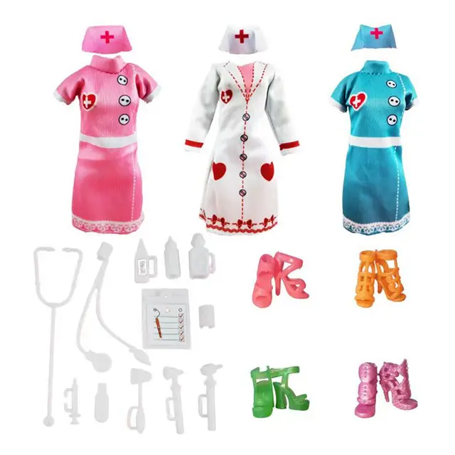 Kids Toys Fashion Outfit Dress Clothes Doctor Nurse Chef Wear Kawaii 21 Items/Lot Doll Accessories 30cm For Barbie Dolls Gifts
