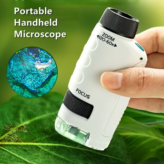 Pocket Microscope Kids Science Toy Kit 60-120x Educational Mini Handheld Microscope with LED Light Outdoor Children Stem Toy