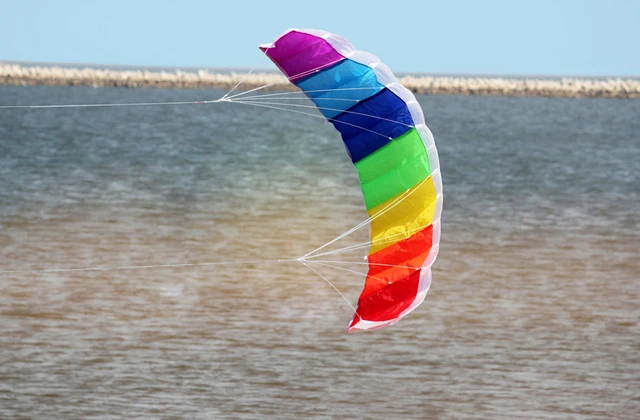 Outdoor Fun Sports Power Dual Line Stunt Parafoil Parachute Rainbow Sports Beach Kite For Beginner