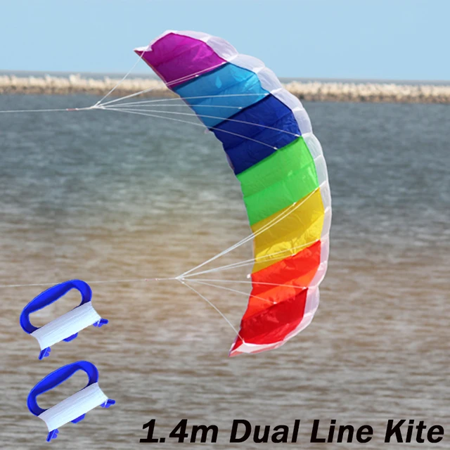Outdoor Fun High Quality 1.4m Dual Line Parafoil Kite With Handle String Rainbow Sports Beach Good Flying
