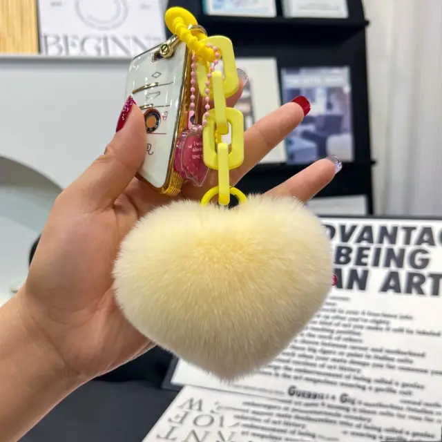 Cars Accessory Natural Fur Heart Charm Keychain Creative Soft Plush Toys Keychain Cute Silicone Valentines Day Gifts Best Friend