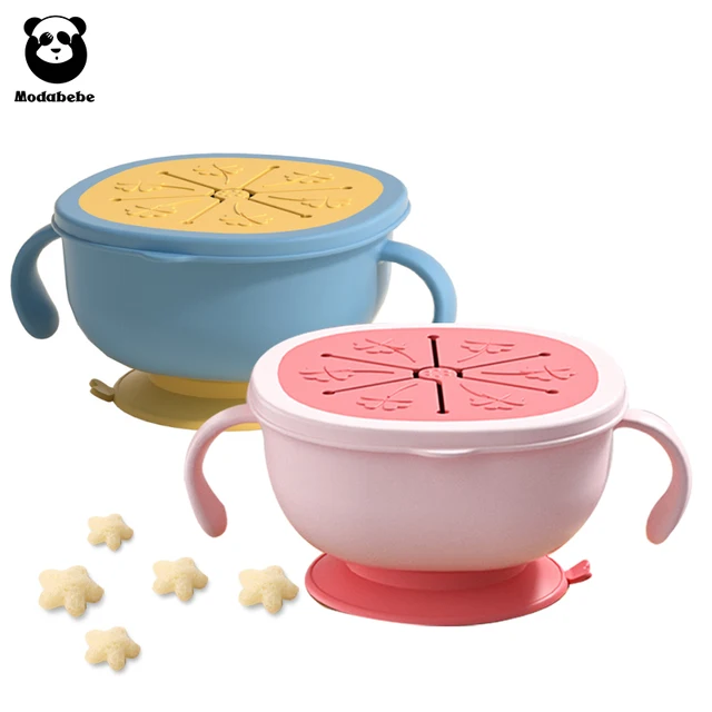 Modabebe 2Pcs Baby Plastic Snack Bowl High Suction Double Handle Snack Cup Spill-Proof Snacks Storage Box Kids Feeding Bowl