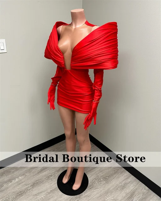 Stunning New Arrival 2024 Red Prom Gown With Two Gloves Off Shoulder Birthday Party Cocktail Dresses Robe De Bal Customized