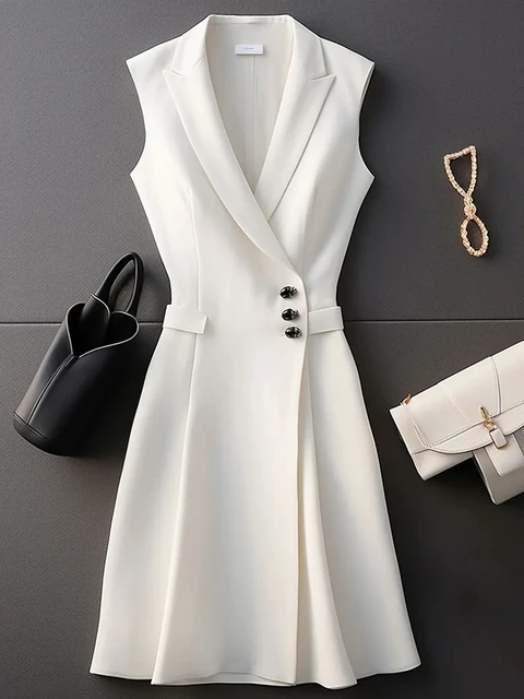 French High-end Exquisite Summer New High-quality Temperament Waist Slimming Formal Occasions Small Fragrance White Suit Dress