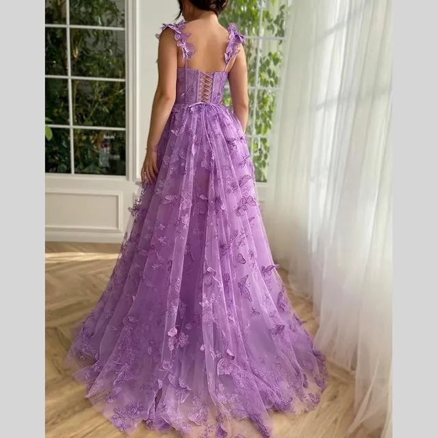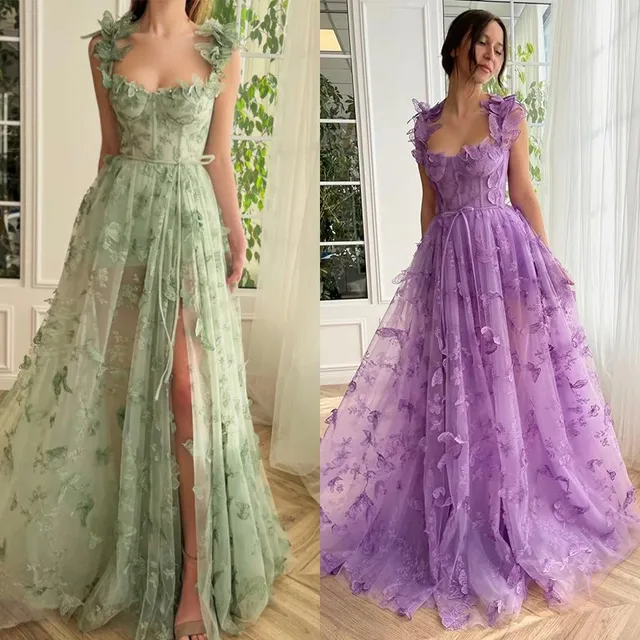 Corset Long Tulle Prom Dress with 3D Butterflies Sexy Slit Ball Gown Evening Dresses Party Wedding Formal 2024 Women Formal 0313
