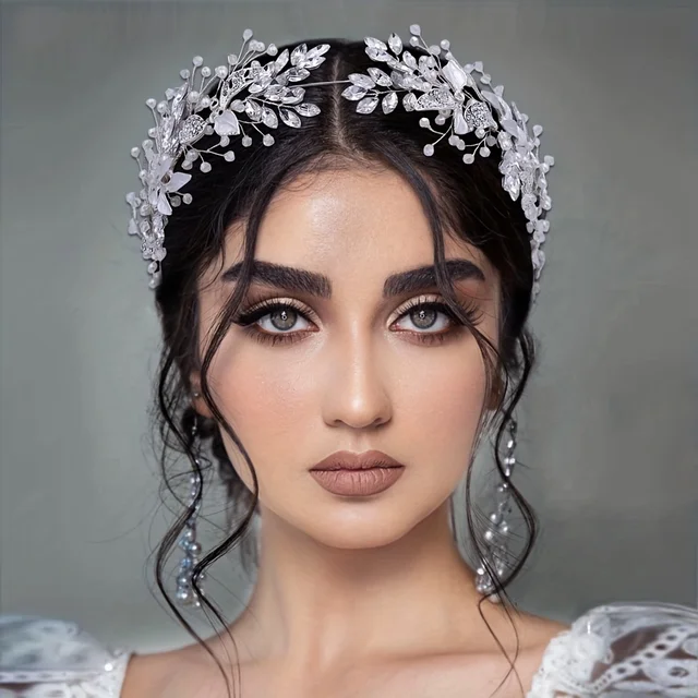 Bridal Hair Accessories Crystal Pearl Headband Tiara Rhinestone Leaf Headband Hairband For Women Elegant Princess Headwear