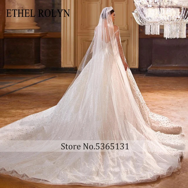 ETHEL ROLYN Luxury Wedding Dress For Women New Glitter Long Sleeve Princess sweetheart Backless Bridal Gown Vestidos De Novia