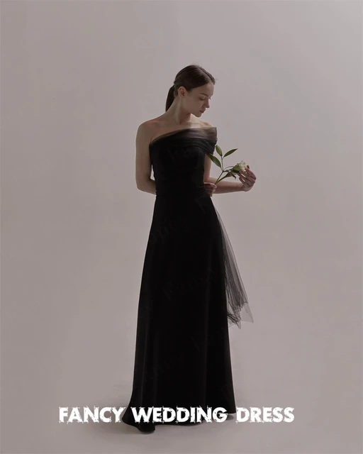 Fancy Simple Black Strapless Korea Wedding Dress A Line Thick Satin Bridal Gown Sleeveless Flower Length Corset Back customized