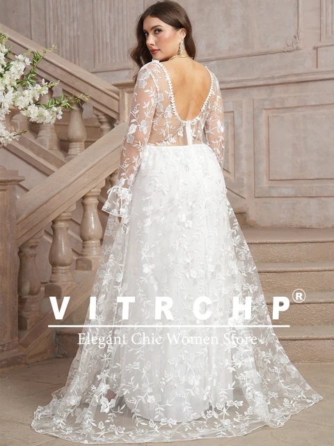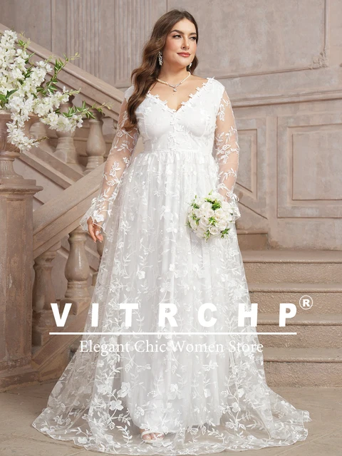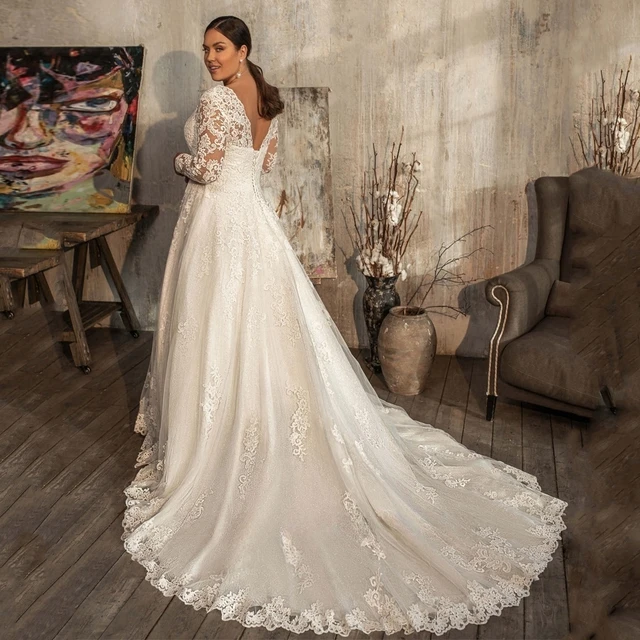 Modest Long Sleeve Plus Size Wedding Dresses Applique Vestido De Noiva V Neck Lace Up Back Vestidos De Novia Customized