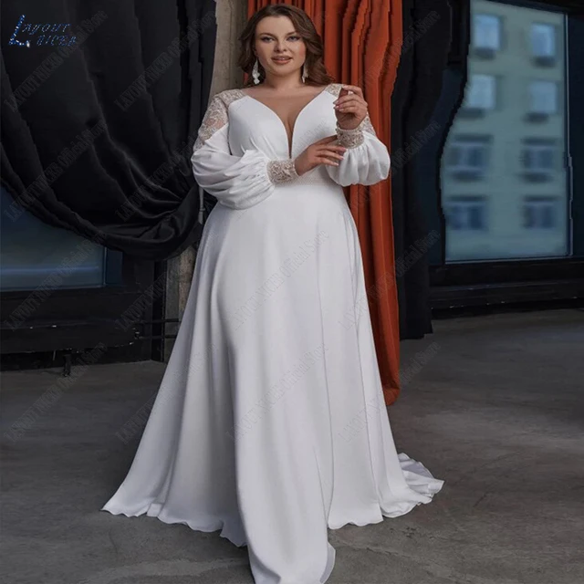 LAYOUT NICEB White A-Line Sweep Train Chiffon Long Sleeve Backless Wedding Dress 2023 Plus Size Brautkleider Robe De Mariée