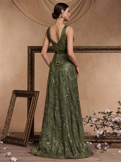 Lucyinlove Luxury Sexy Deep V-Neck Sequins Blue Evening Dresses Women Elegant V-back Wedding Party Long Prom Cocktail Dress