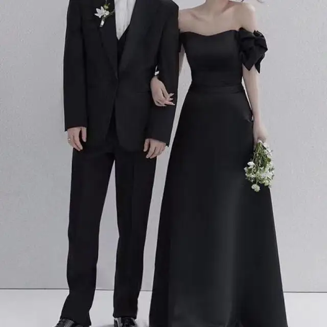 Sweet Bow Off The Shoulder Wedding Dresses Satin Black Evening Dress Elegant Floor-length A Line Simple Bridal Dress Customized