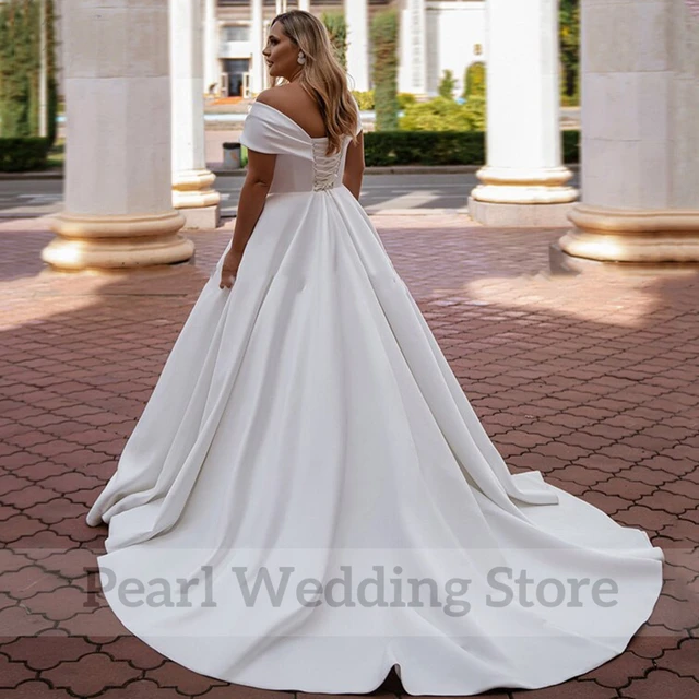Simple Satin Wedding Dress V-Neck Off the Shoulder Short Sleeves Plus Size Bride Gowns Classic A-Line Floor Vestidos De Novia