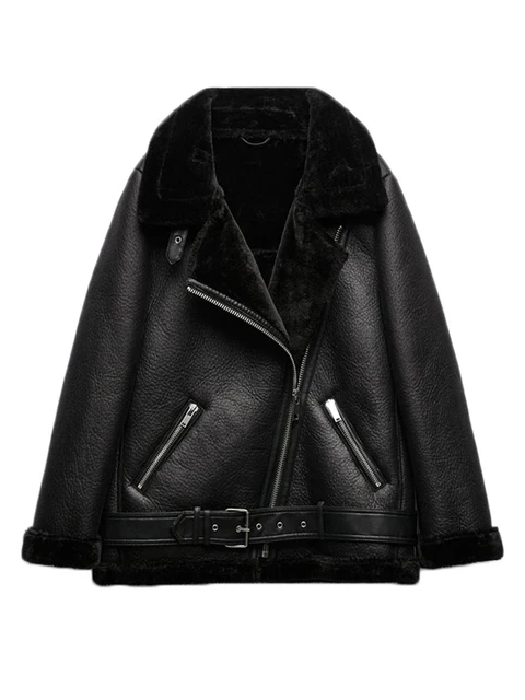 Ly Varey Lin Winter Faux Lamb Leather Jacket Women Faux Leather Lambs Wool Fur Collar Pu Moto Zipper Jacket Warm Thick Outerwear