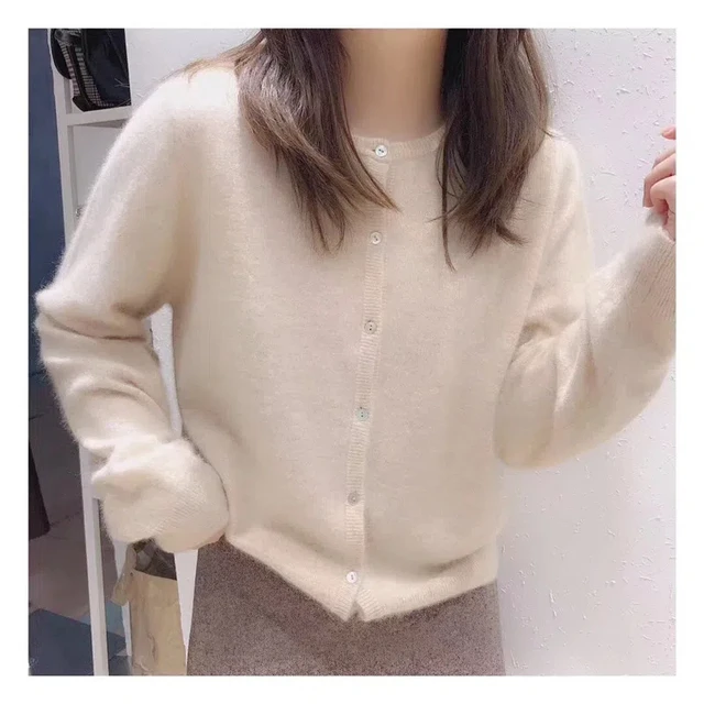 New Fashionable Round Neck Short Knitted Cardigan Loose Fit Casual Sweater Jacket for Women 234