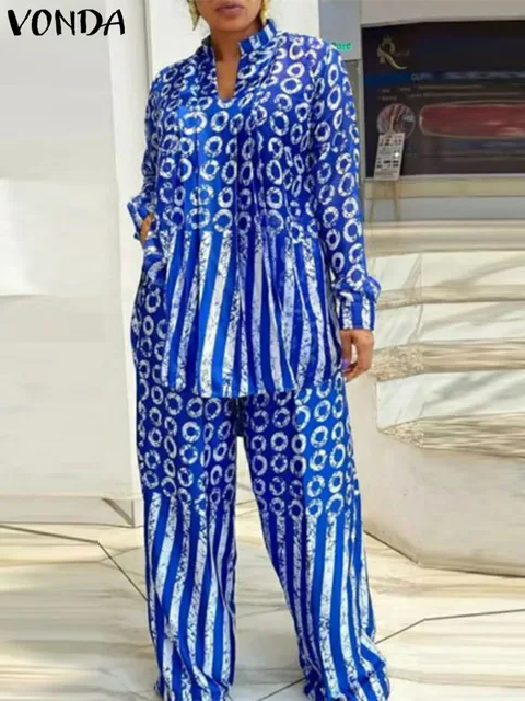 Plus Size 5XL VONDA Women Pants Sets 2024 Elegant Matching Sets Short Sleeve Print Blouse Trousers Sets 2024 Casual Baggy Suits