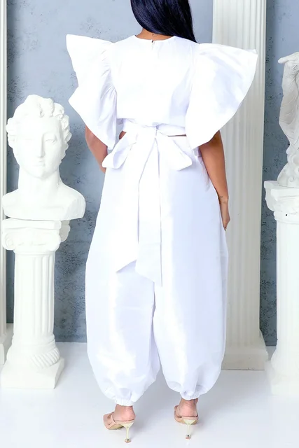 Women’s Plus Size Matching Set Round Neck Flutter Sleeves Short Sleeve Tops and Loose Trousers Casual Two Pieces Sets for Summer