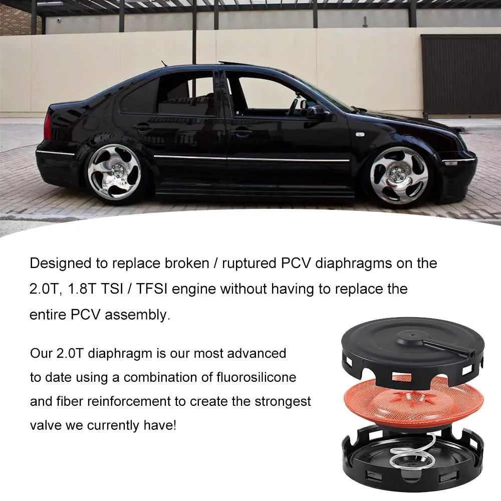 Designed to replace broken / ruptured PCV diaphragms on the 2.0T, 1.8T TSI / TFSI engine without having to replace the entire PCV assembly.