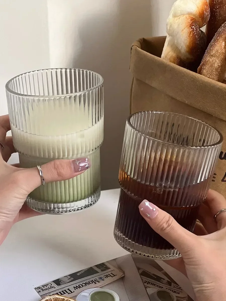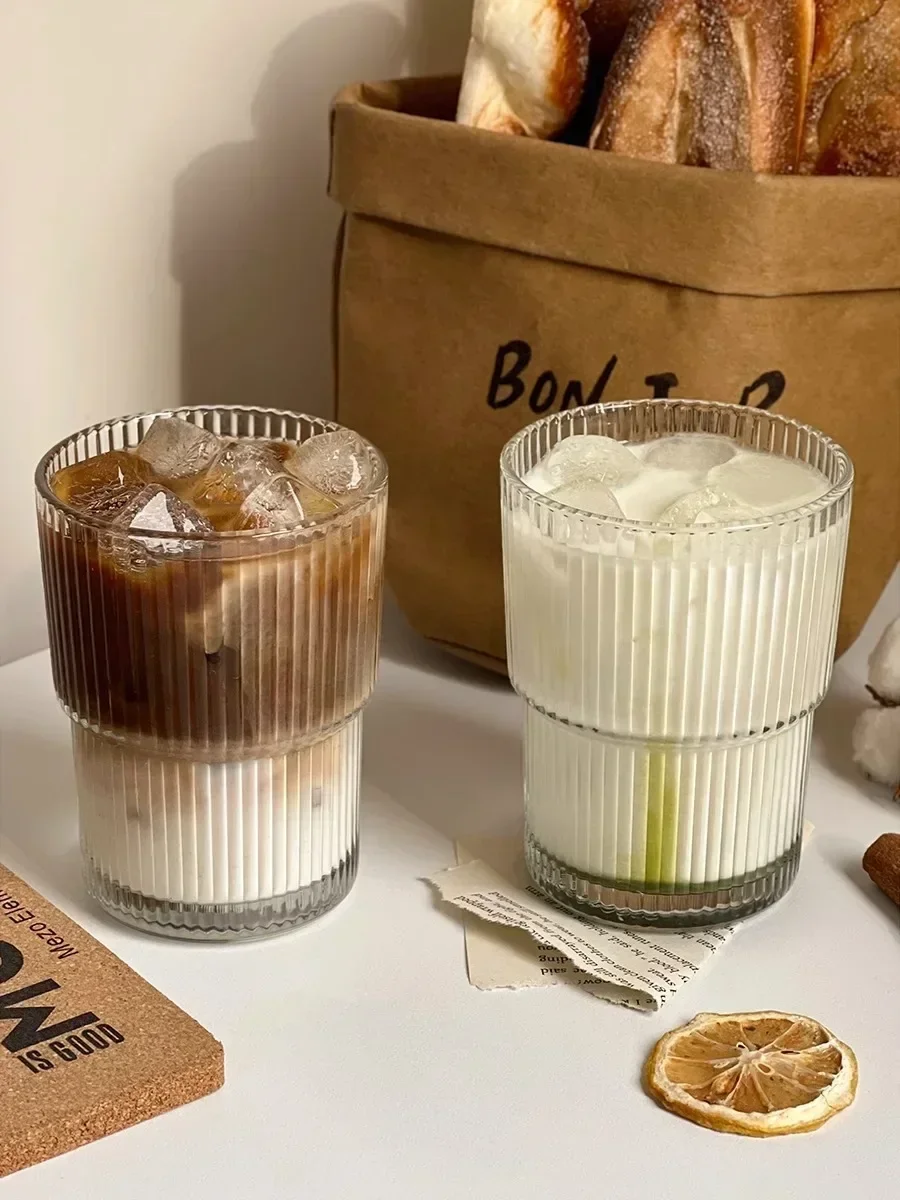 1/2PCS 450ml Stripe Glass Cup Transparent Glasses With Lid and Straw Ice Coffee Mug Tea Cup Juice Glass Milk Water Cup Drinkware