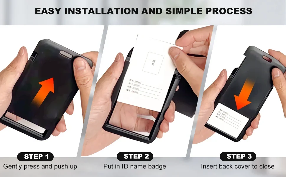 Sliding ID Badge Holder Easy Access. The back cover slide cosed/Open Shields your ID Badges Security.