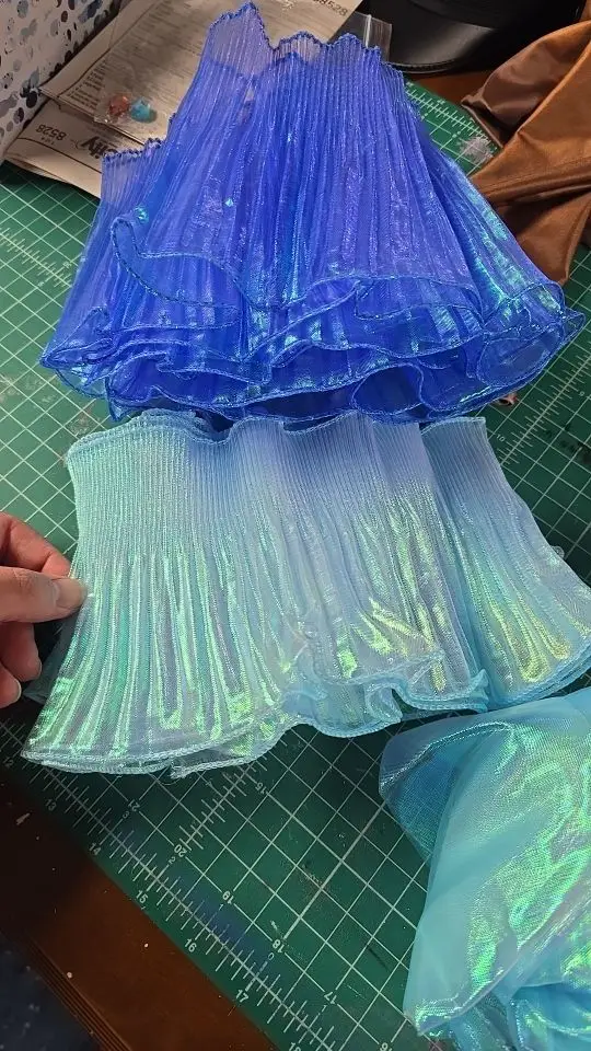 14 reviews for 1 Yard Blue Lace Fabric Pleated Mermaid Effect Laser Neon Luster For Women Dress 15CM Wide