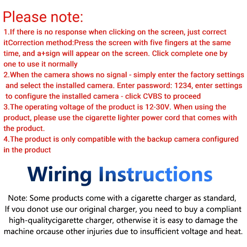 Function:Support IPS screenSupport FM signal transmission functionSupports USB flash drive SD card (audio/video/Image)Supports Bluetooth function (5.0 Bluetooth)Supports WIfi (2.4G+5G)Supports wired mobile projection screen, wired and wireless Android Auto/Apple CarPlaySupports reverse view function (optional AHD camera). When the car is in reverse gear, it will automatically switch to the reverse image.Supports wired and wireless CarPlay+Android Auto, enabling one click navigation, music, voice assistant and other functions on your phone, allowing you to easily enjoy driving pleasureSupports high-definition inverted images (requires camera selection).Working voltage: 12-30VWorking temperature: -10~70 ° CBluetooth version: 5.0 versionDisplay resolution: 19200x720Screen size: 11.26 inchesSingle weight: 0.91kgAudio format: MP3/AAC/APE/OGG/M4A/RA/WAVVideo format: H263/H264/H265/DIVX HD/AVI/FLV/MKWIMPEG/MP4/WMV9NC/ASF/TS/QTImage format: JPG/PNG/BMP/GIF/TIFFLanguage: English, Chinese, Traditional Chinese, Spanish, Portuguese, Russian, German, French, Turkish, Arabic, Hebrew, Italian, Czech, Japanese. Korean, Thai
