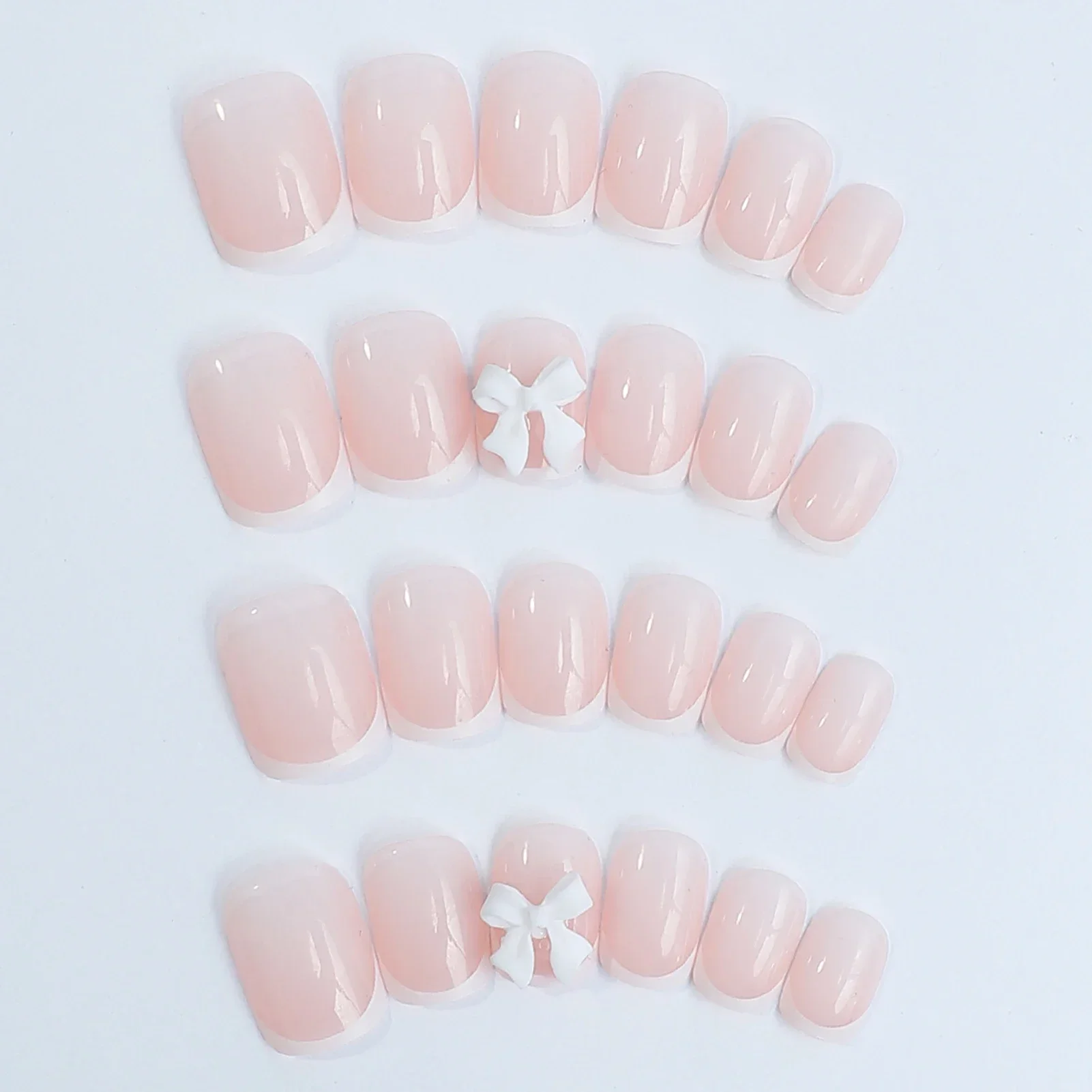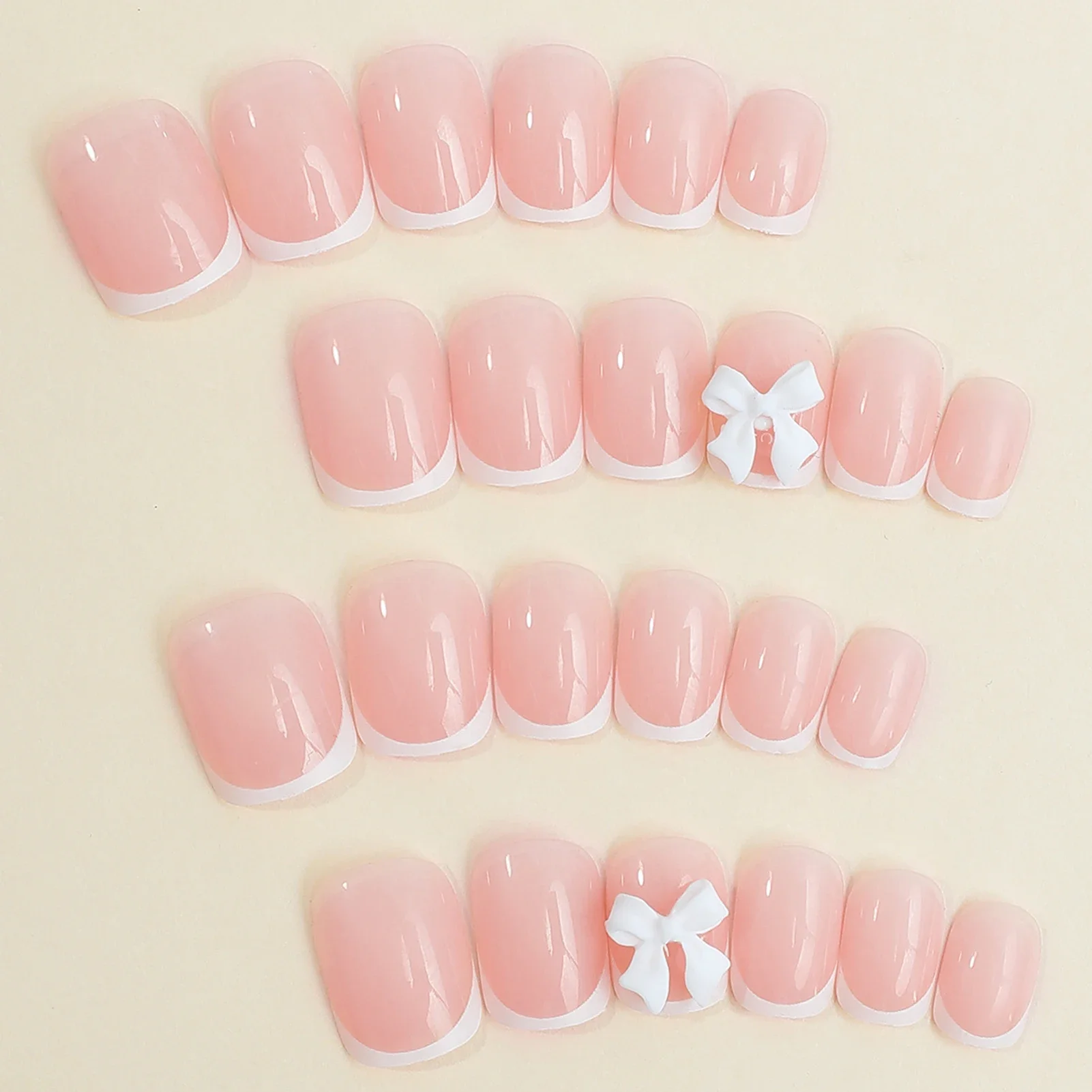 Elegant Design: This set includes 24pcs of french fake nails with a resin white square nail tips adorned with bowknot design, perfect for women and girls’ party activities.